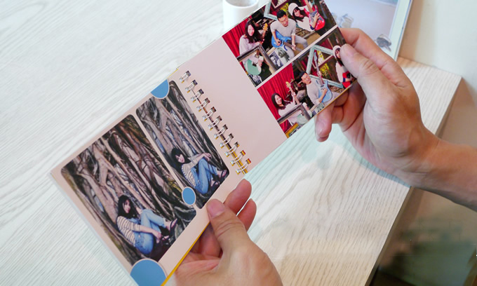 擁有直式與橫式兩種尺寸可選擇,封面封底自行發揮創意任意設計文字和圖片,使用250磅進口銅版紙印製封面、內頁,採手工對貼可180°完全攤開