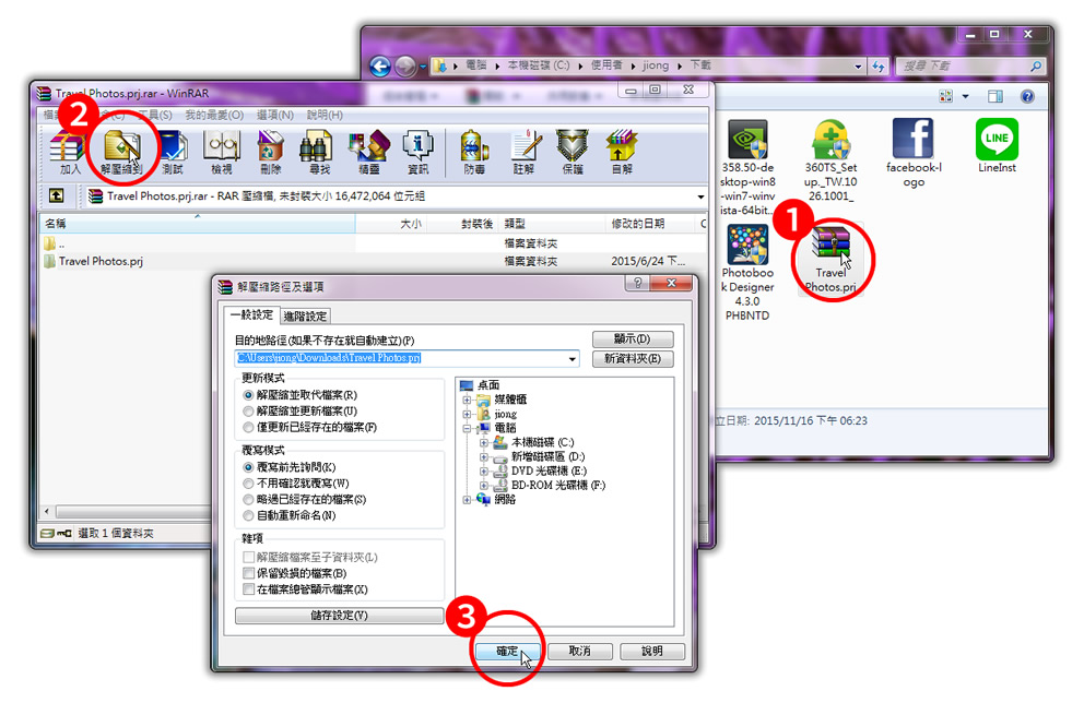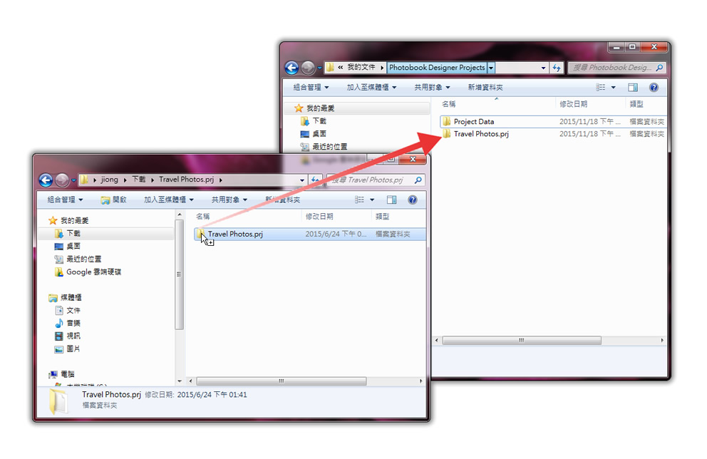 開啟解壓縮完成的資料夾,將資料夾裡檔案複製至【我的文件】➨【Photobook Designer Projects】資料夾內。