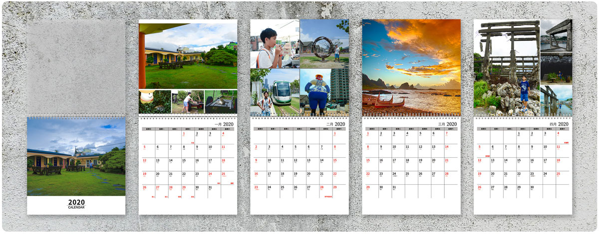 展開尺寸 28×56公分,採用白色雙環裝並附帶圓珠鍊方便牆面掛勾。可任意挑選起始月份並在任何重要日子加入照片及文字、日期語系顏色皆能更改,使用250磅進口紙印製(230磅美術紙 換購),首頁使用半透膠片、尾頁牛皮紙完整保護你的作品。