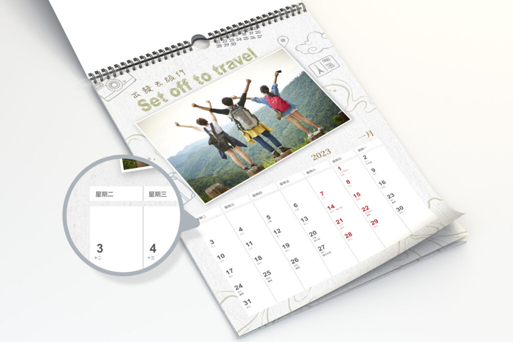 可以自訂桌曆從幾月開始、從星期幾開始,完全屬於自己的風格!